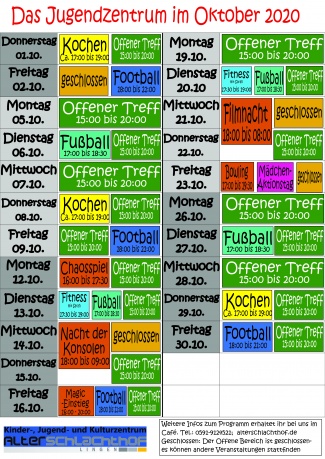 Für mehr Informationen besucht unsere Facebook Seite oder schaut euch den aktuellen Monatsplan an.